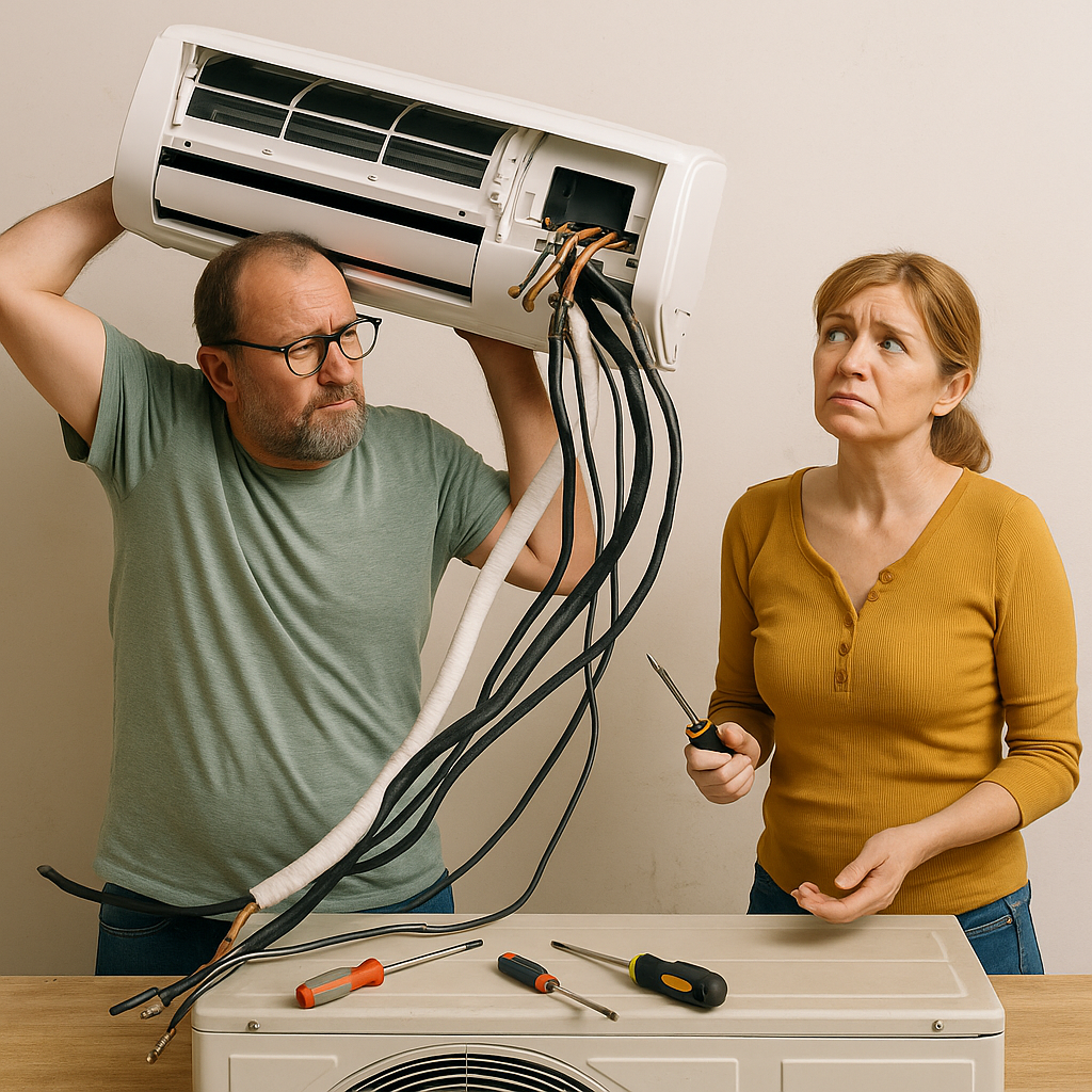 Montáž klimatizace není přivrtání poličky z Ikea. A přesto se v Česku pořád najde spousta lidí, kteří si řeknou: „To zvládneme svépomocí. Vždyť Franta má vrtačku a YouTube je plný návodů.“ Výsledek? Zničená zeď, kapající jednotka, a klimatizace, která spíš hučí, než chladí. Tady je seznam častých “no-go” situací, se kterými se jako montážní firma, kterou zoufalý kutil posléze volá, bohužel pravidelně setkáváme.